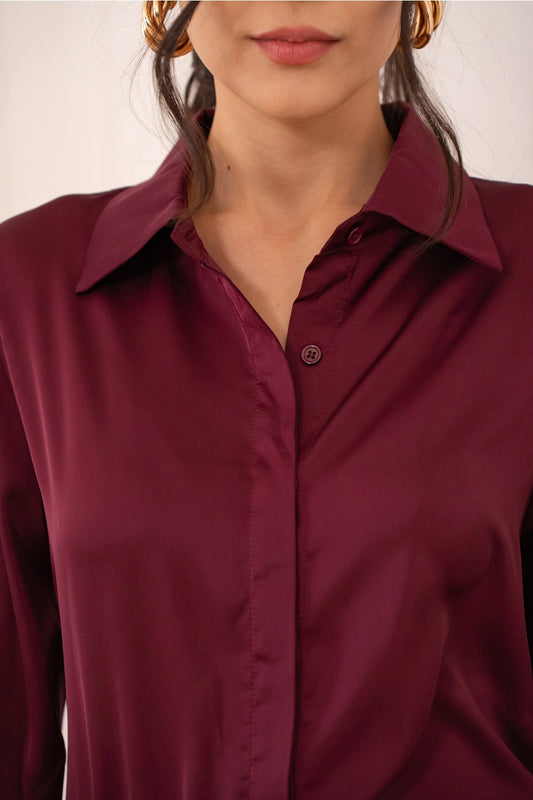 In saldo!Camicia in raso Lea - Bordeaux
