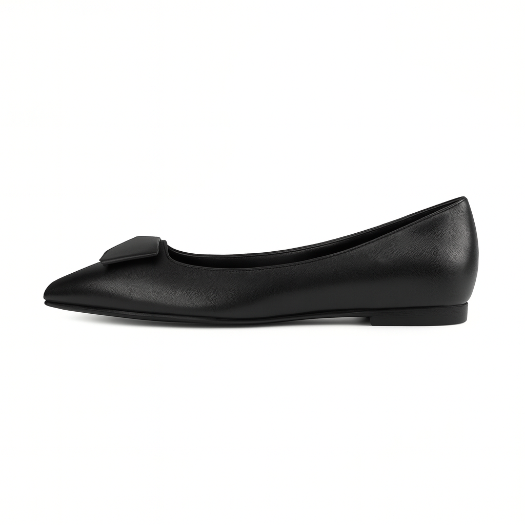 Linee essenziali e stile raffinato per questa ballerina in tinta unita nera. La punta squadrata dona un carattere moderno e contemporaneo, impreziosito da un accessorio tono su tono che arricchisce la tomaia con discreta eleganza. Il tacco basso di 1 cm garantisce praticità e comfort, rendendola la scelta ideale per accompagnare ogni momento della giornata con stile minimal e versatile.