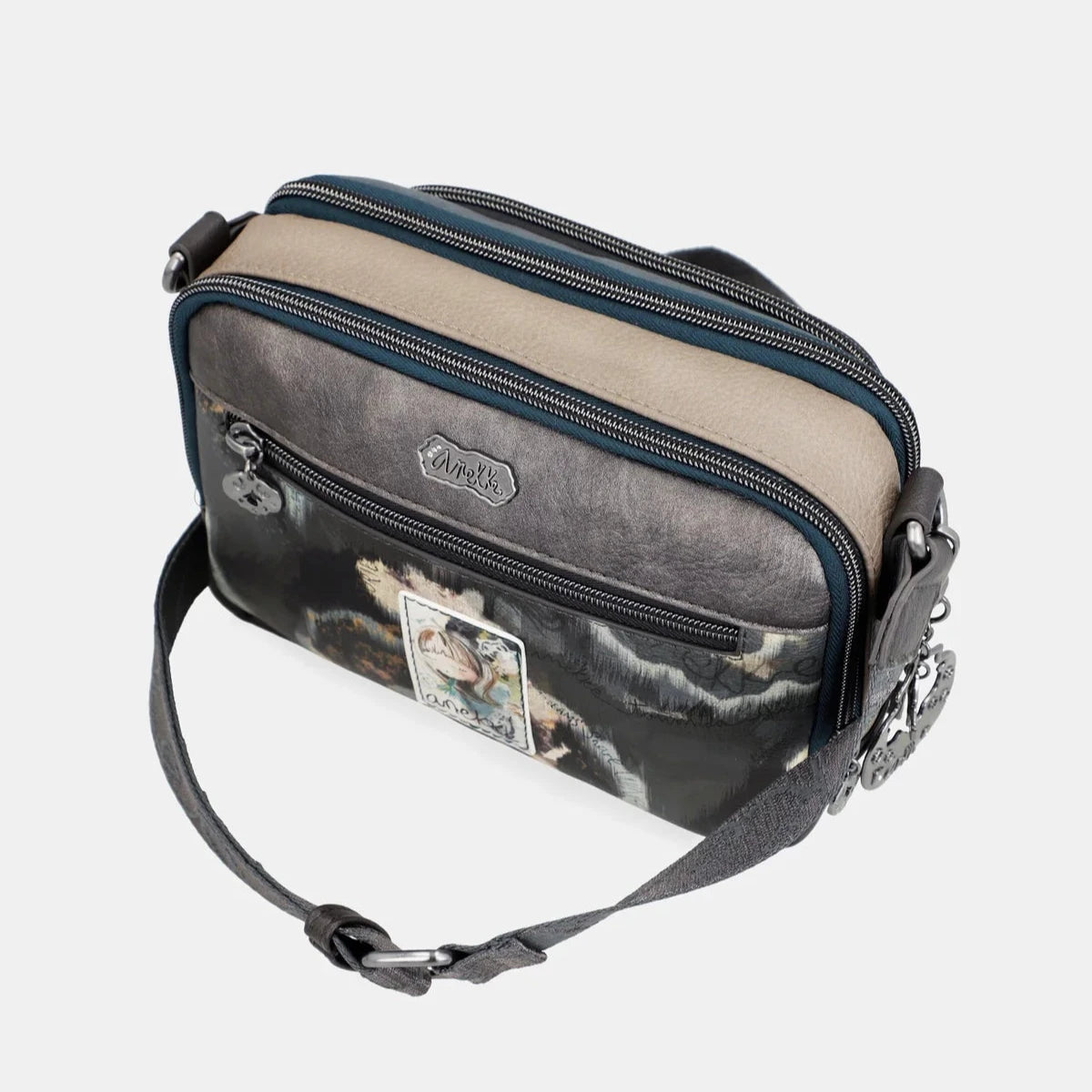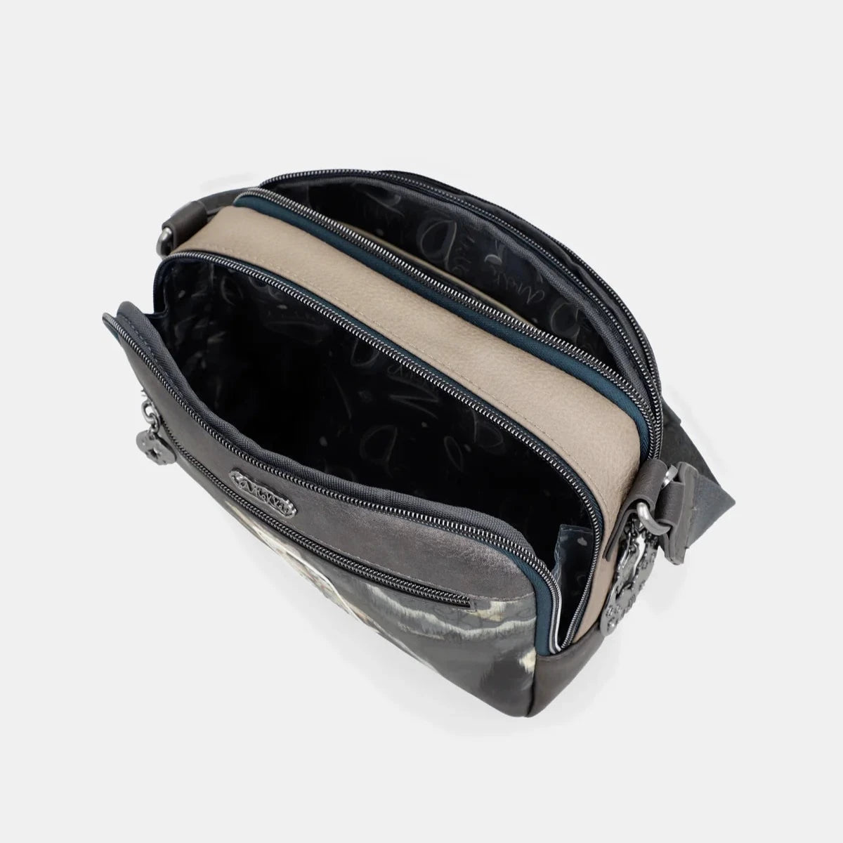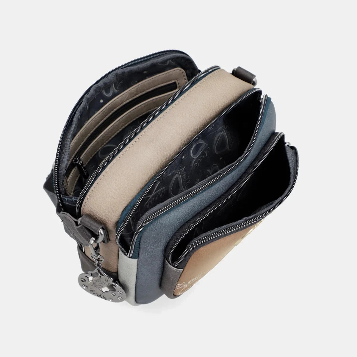 Tasche: 2 scomparti, 1 tasca posteriore, 1 tasca per cellulare e 1 tasca color crema.