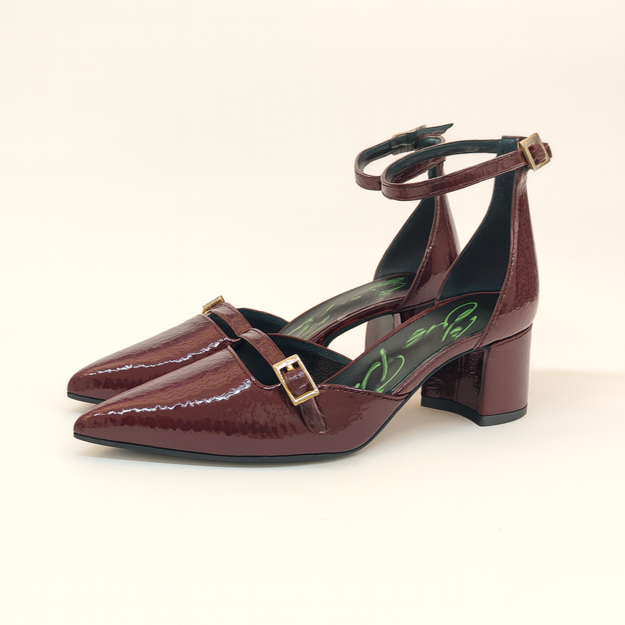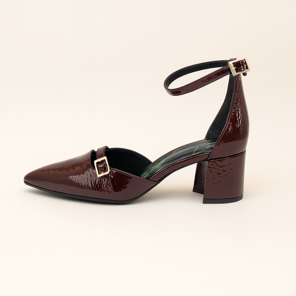 Un modello elegante e versatile, perfetto per aggiungere un tocco di stile a ogni look. Realizzata in vernice lucida, questa décolleté si distingue per il particolare cinturino che valorizza il collo del piede e assicura una calzata confortevole. Il tacco quadrato da 5 cm unisce stabilità e femminilità, rendendo la scarpa adatta sia a un utilizzo quotidiano che ad occasioni speciali.