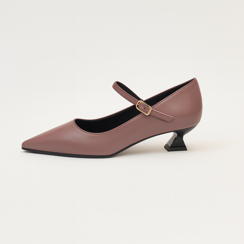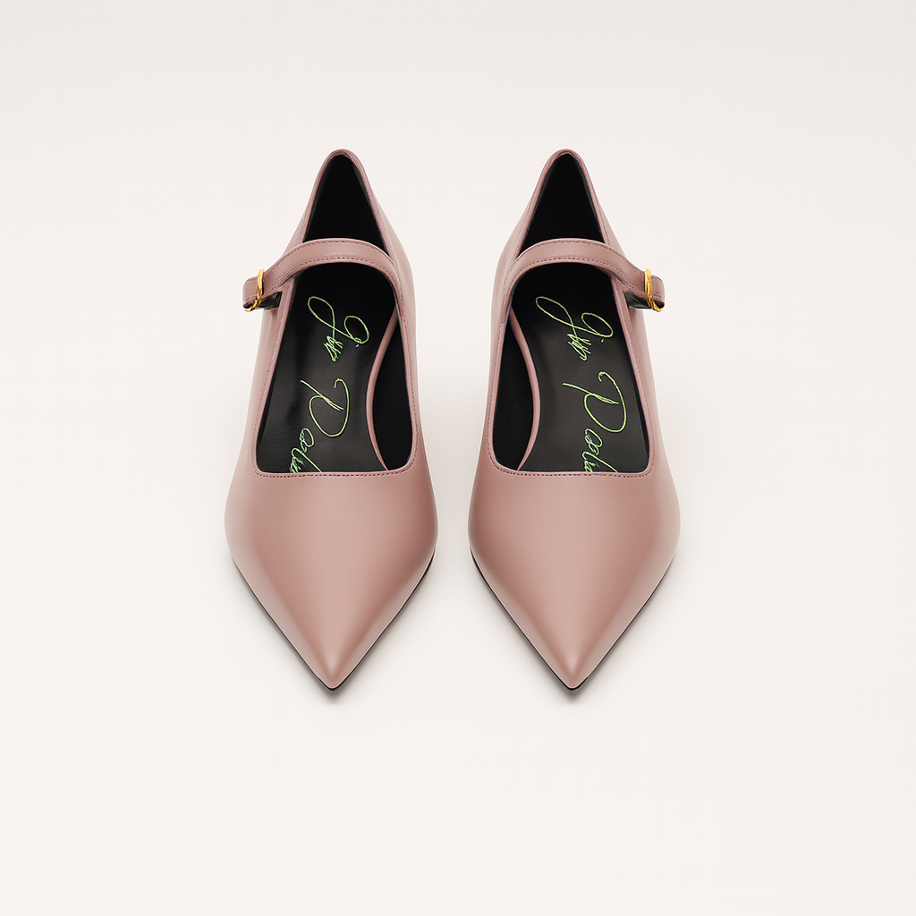 Eleganti e femminili, queste Mary Jane in pelle liscia color rosa cipria uniscono stile e comfort. Il design a punta affusolata slancia la silhouette, mentre il cinturino con fibbia dorata assicura una calzata stabile e raffinata. Il tacco basso e svasato conferisce un tocco moderno, ideale per l’uso quotidiano o per completare outfit da ufficio e da cerimonia.