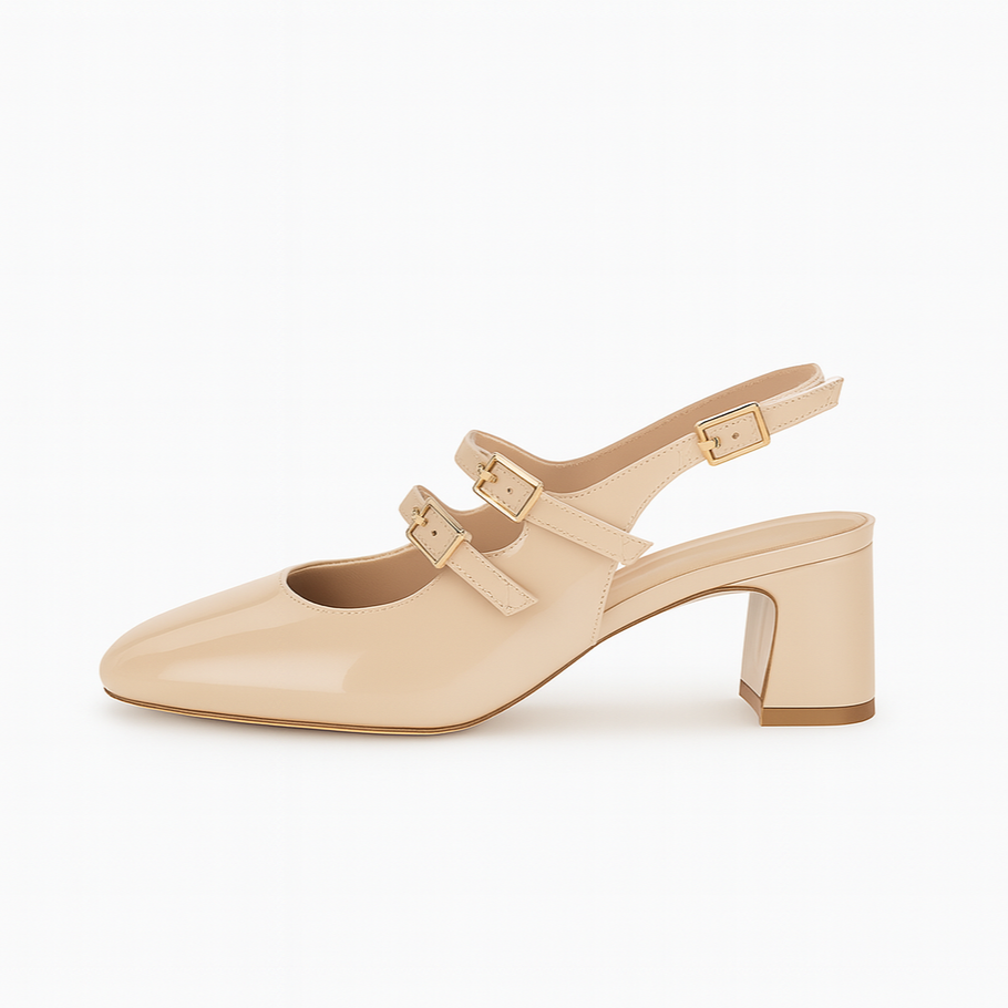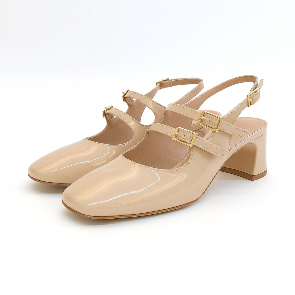 Mary Jane Soffice Sogno in vernice nude presenta un design elegante e sofisticato, arricchito da un doppio cinturino che garantisce una calzata sicura e stilosa. Il tacco da 6 cm offre un perfetto equilibrio tra comfort e slancio, rendendola ideale per occasioni formali o serate eleganti. La vernice nude dona una raffinata luminosità, versatile per abbinamenti con diversi outfit.
