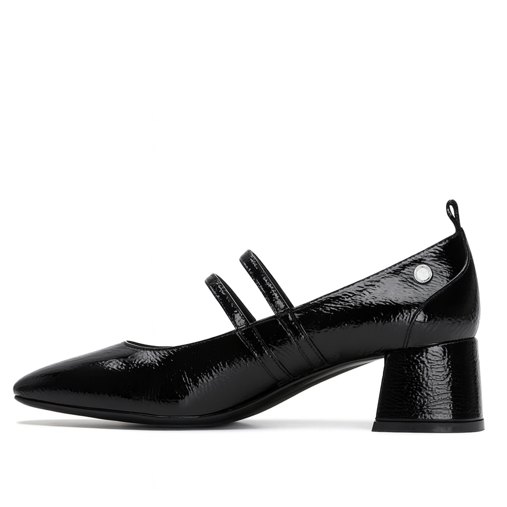 Scarpa da donna del marchio Xti. Realizzata in pelle verniciata. Dotate di due cinturini con fibbia per un maggiore supporto. Comodo tacco di 4 cm con suola in gomma antiscivolo. Questo modello è stato certificato vegano dall'organizzazione globale PETA (Animal Rights Organization).