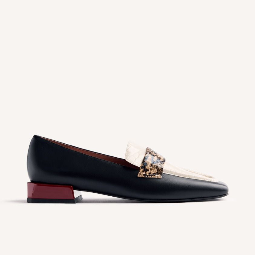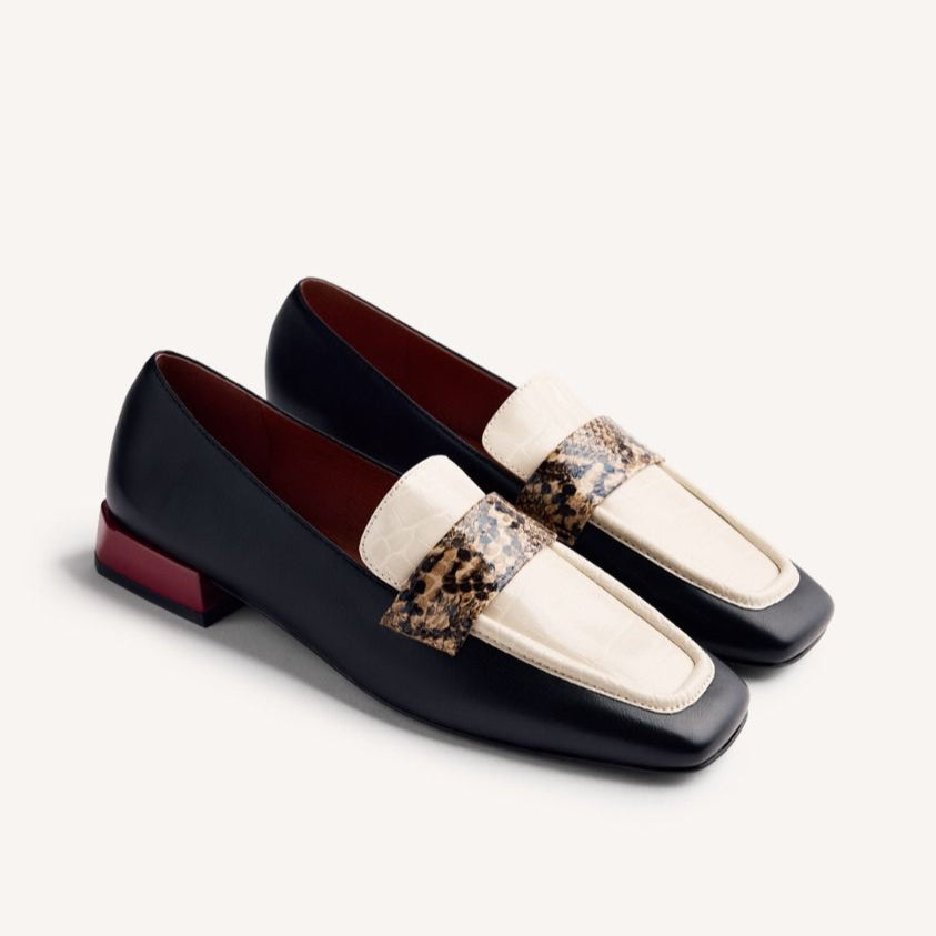 Mocassini con colori e texture a contrasto. Presentano una mascherina con stampa serpente, stampa serpente e suola imbottita. Fodera e suola in pelle. Tomaia in poliuretano. Suola in gomma.