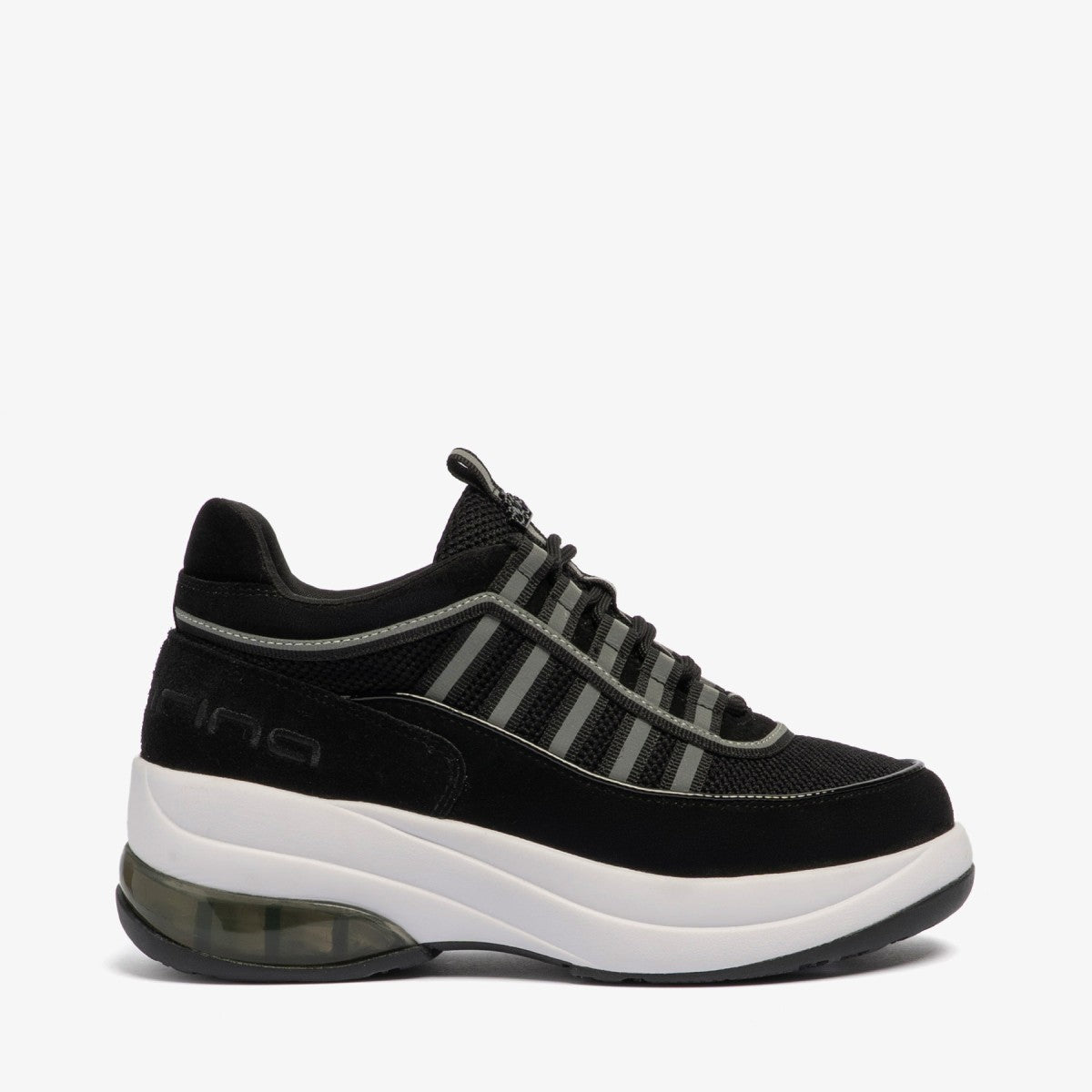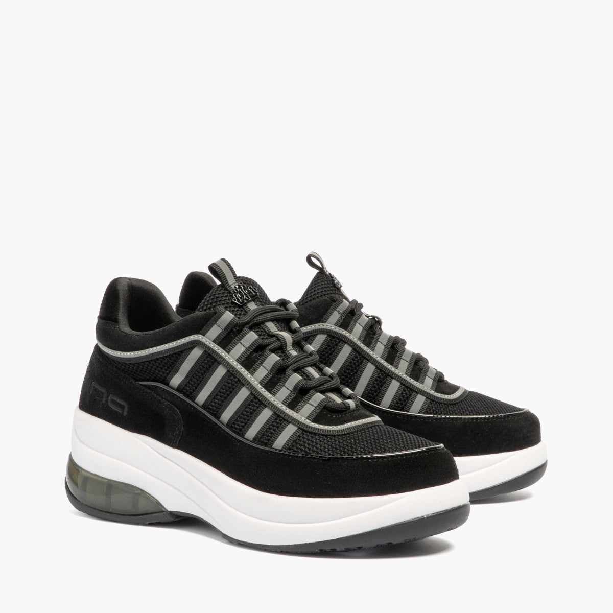 Minimal ed evergreen: anche per l'Autunno Inverno 25/26 le UP tornano in total black in camoscio e lycra. Zeppa 6 cm, le sneakers Fornarina UP rappresentano un ritorno in grande stile delle iconiche calzature degli anni '90, rivisitate con un tocco moderno e audace. Queste scarpe sono caratterizzate da una suola platform rialzata, che offre comfort e stile contemporaneo. Pensate per chi desidera un look distintivo e di tendenza