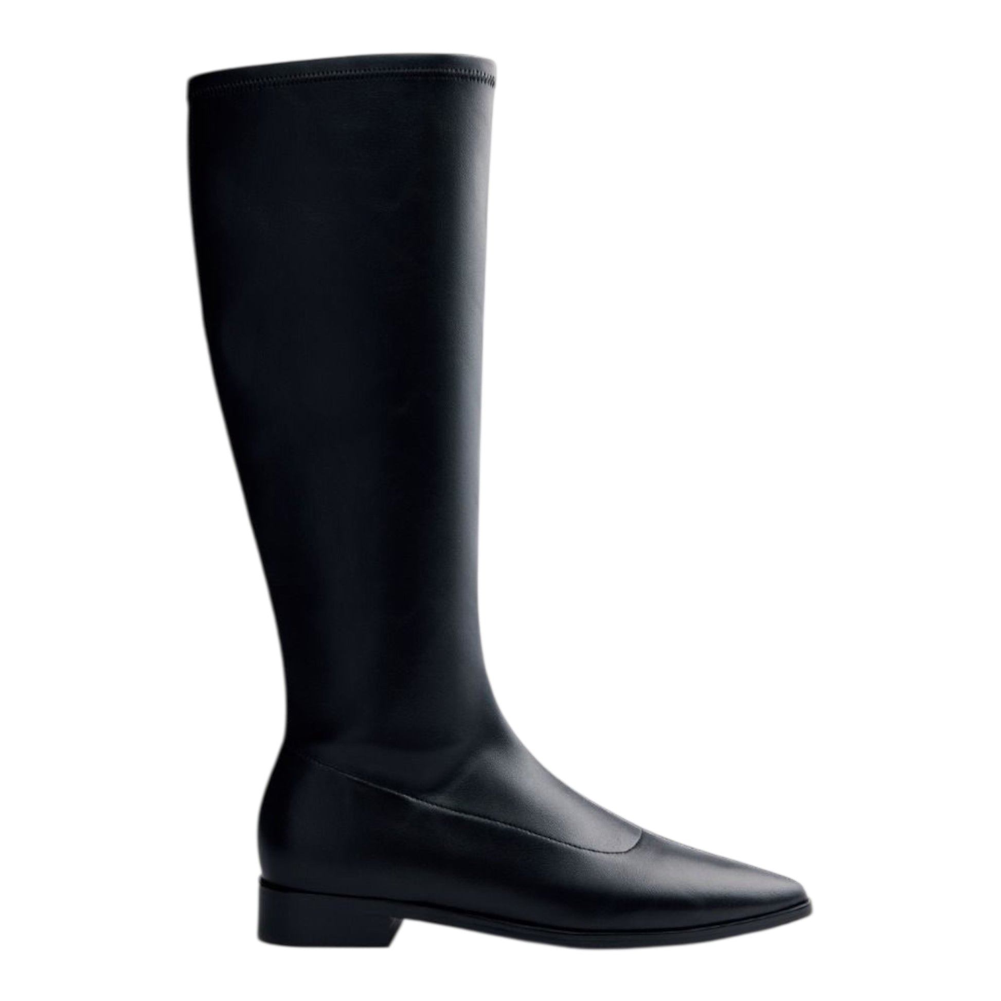 Stivali con gambale alto elasticizzato. Punta affusolata. Soletta imbottita. Altezza tacco: 2,5 cm. Seguiamo la guida standard per la larghezza del gambale, adattando la misura in base alla taglia. La taglia 37 si adatta a polpacci con circonferenza fino a 38 cm. Tomaia in poliuretano. Fodera in lycra. Soletta in pelle. Suola in gomma.