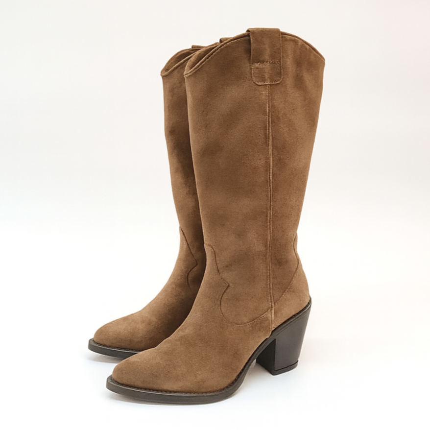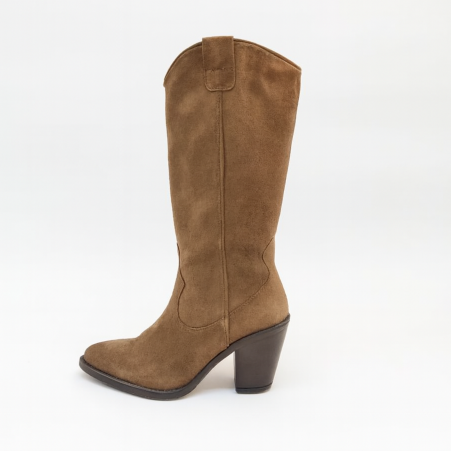 Stile e comfort si incontrano in questo tronchetto dal design texano, realizzato in vero camoscio per un look raffinato e contemporaneo. Il tacco da 7,5 cm slancia la silhouette senza rinunciare alla comodità, mentre il fondo in gomma antiscivolo garantisce stabilità e sicurezza ad ogni passo. La zip interna lo rende pratico da indossare, perfetto per completare outfit casual o più ricercati con un tocco deciso e femminile