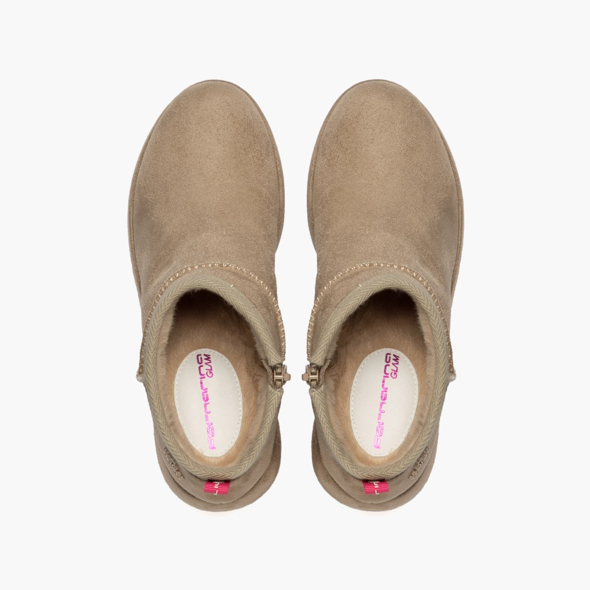 Vibes anni '70 per le zeppe total taupe scamosciate coninterno caldo in eco-pelliccia e zip laterale. L'accessorio perfetto per affrontare la stagione fredda con stile. altezza tacco 9,5 cm e platform 4,5 cm