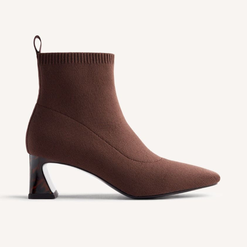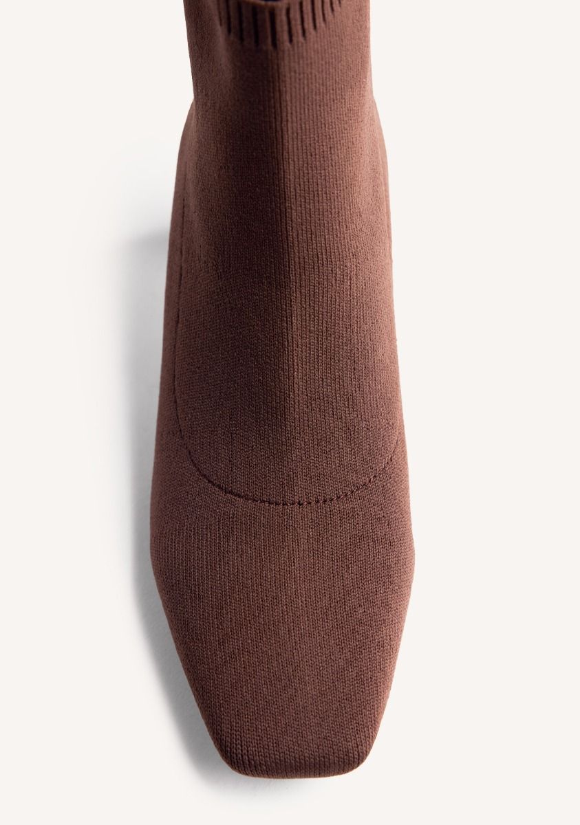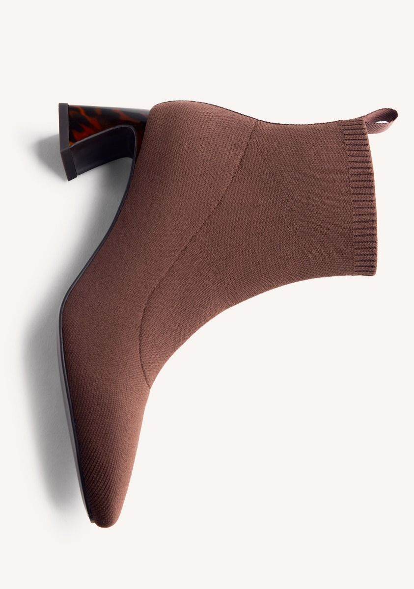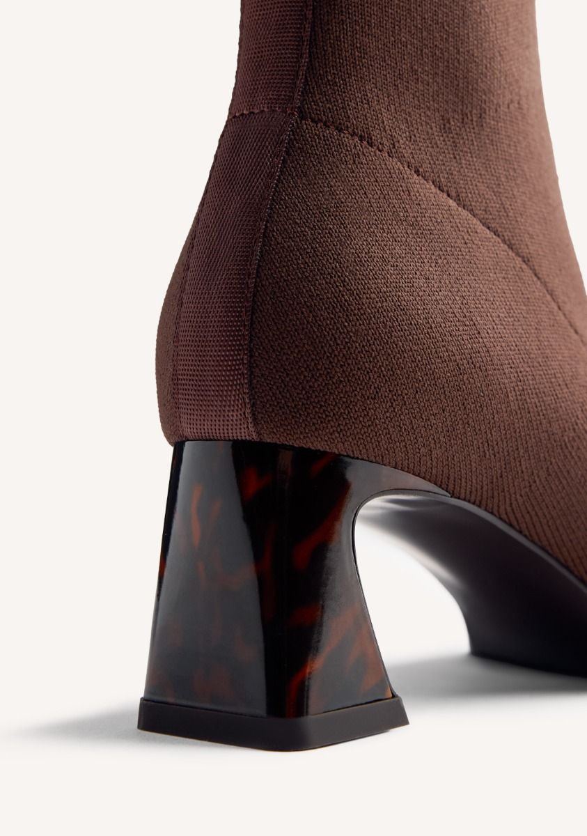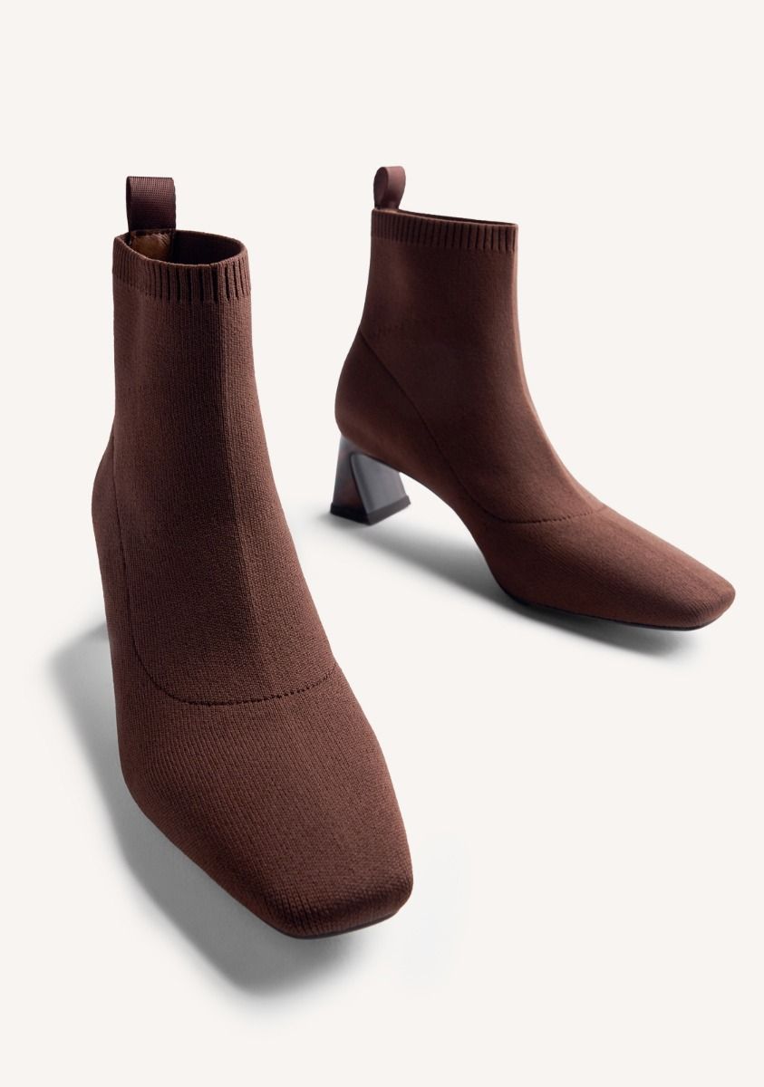 Stivaletti con gambale a calzino. Tacco scultoreo effetto tartaruga e punta squadrata. Hanno una soletta imbottita. Questo modello si distingue per la sua morbidezza ed elasticità. Altezza tacco: 5,5 cm. Seguiamo la guida standard per la larghezza del gambale, adattando la misura in base alla taglia. Tomaia in poliestere. Fodera in poliestere e poliuretano. Soletta in poliuretano. Suola in gomma.
