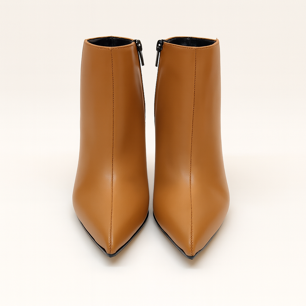 Un modello grintoso e raffinato allo stesso tempo. Realizzato in morbida pelle, questo stivaletto presenta linee pulite e una lavorazione a punta che slancia la figura. Il tacco a blocco di 7 cm offre stabilità e comfort, mentre la zip interna garantisce una calzata pratica e veloce. Un alleato versatile da indossare con abiti, gonne o pantaloni, perfetto per completare con carattere i look di tutti i giorni e quelli più eleganti.