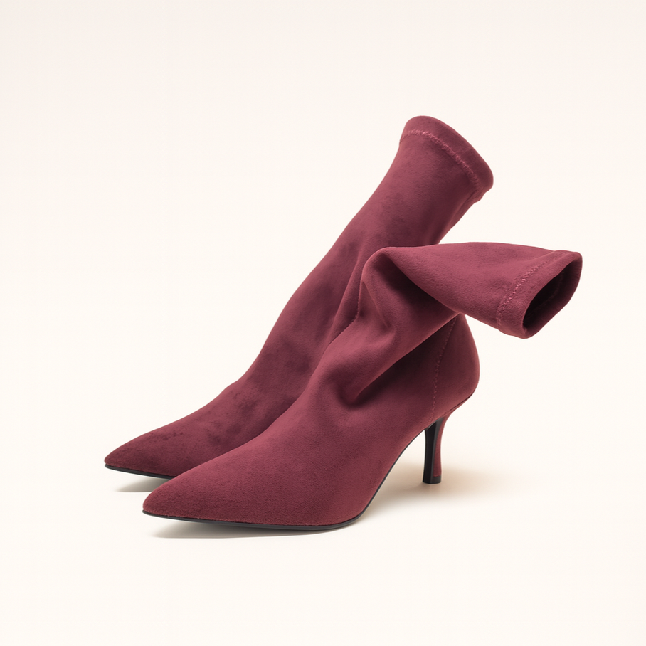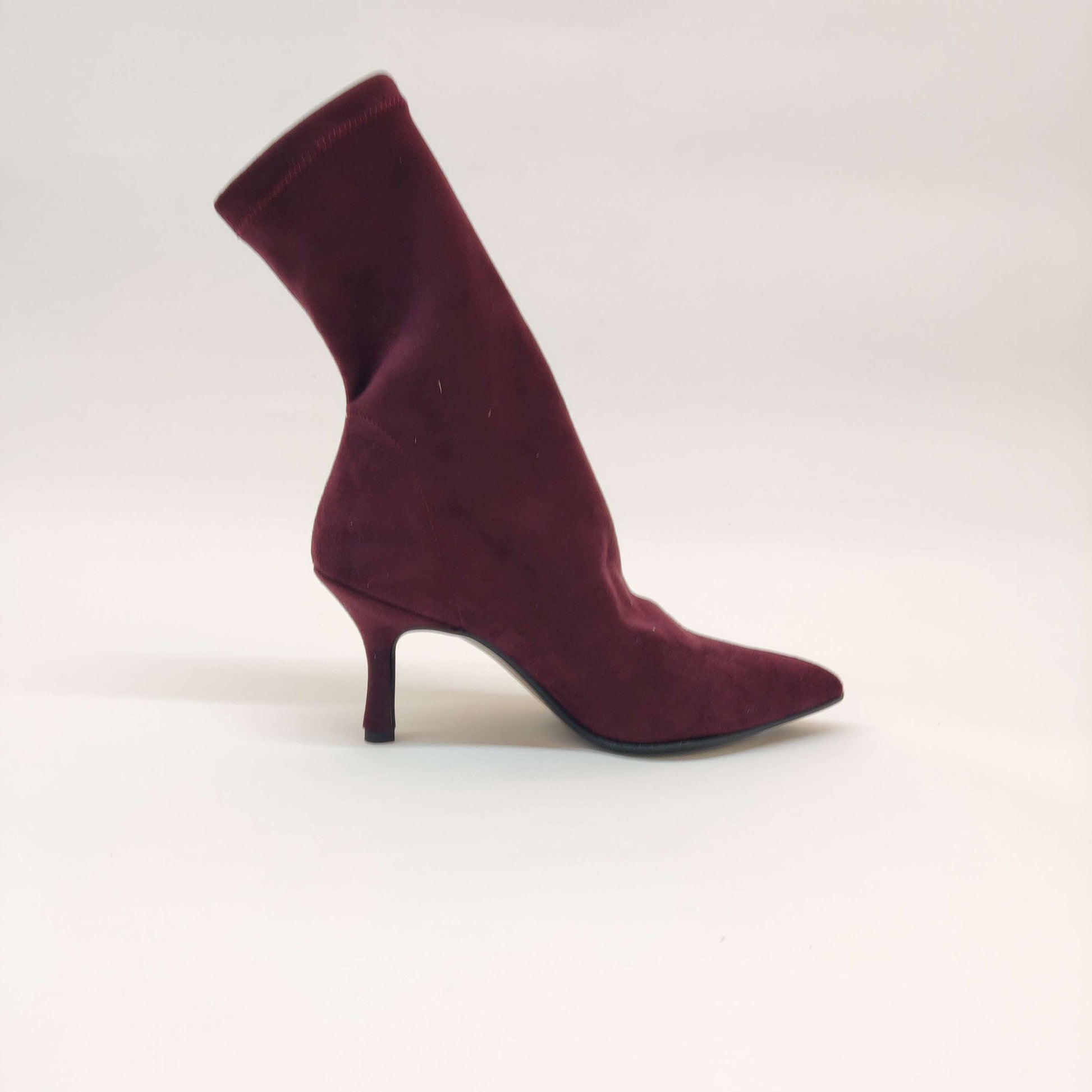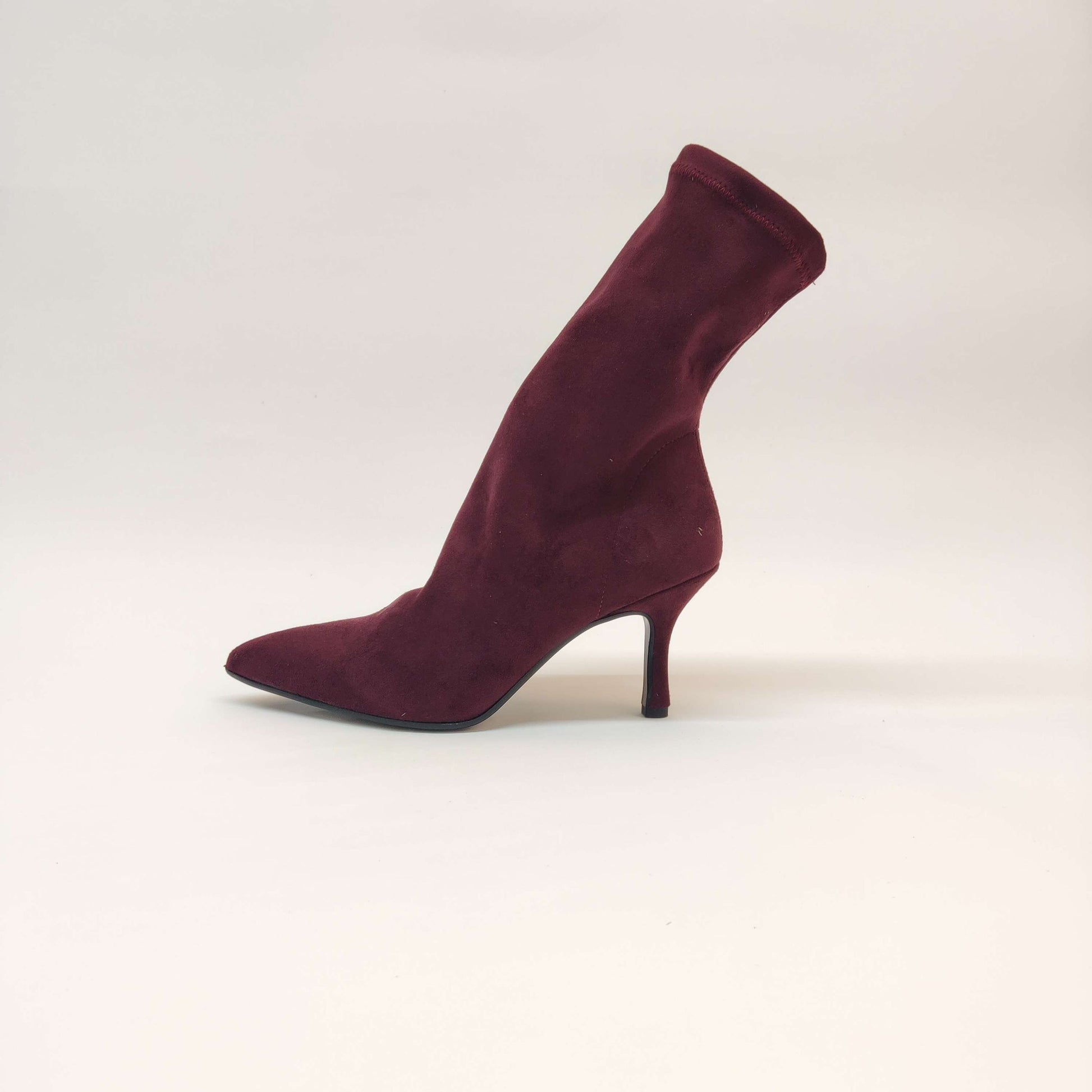Un design moderno che unisce comfort e femminilità. Realizzato in morbido camoscio bordeaux, questo stivaletto avvolge delicatamente il piede con un effetto calza che assicura una calzata perfetta e slanciata. Il tacco a blocco di 7 cm, rivestito in tono, dona stabilità e un’eleganza discreta, rendendolo ideale per accompagnare outfit quotidiani o serali con un tocco sofisticato e ricercato.