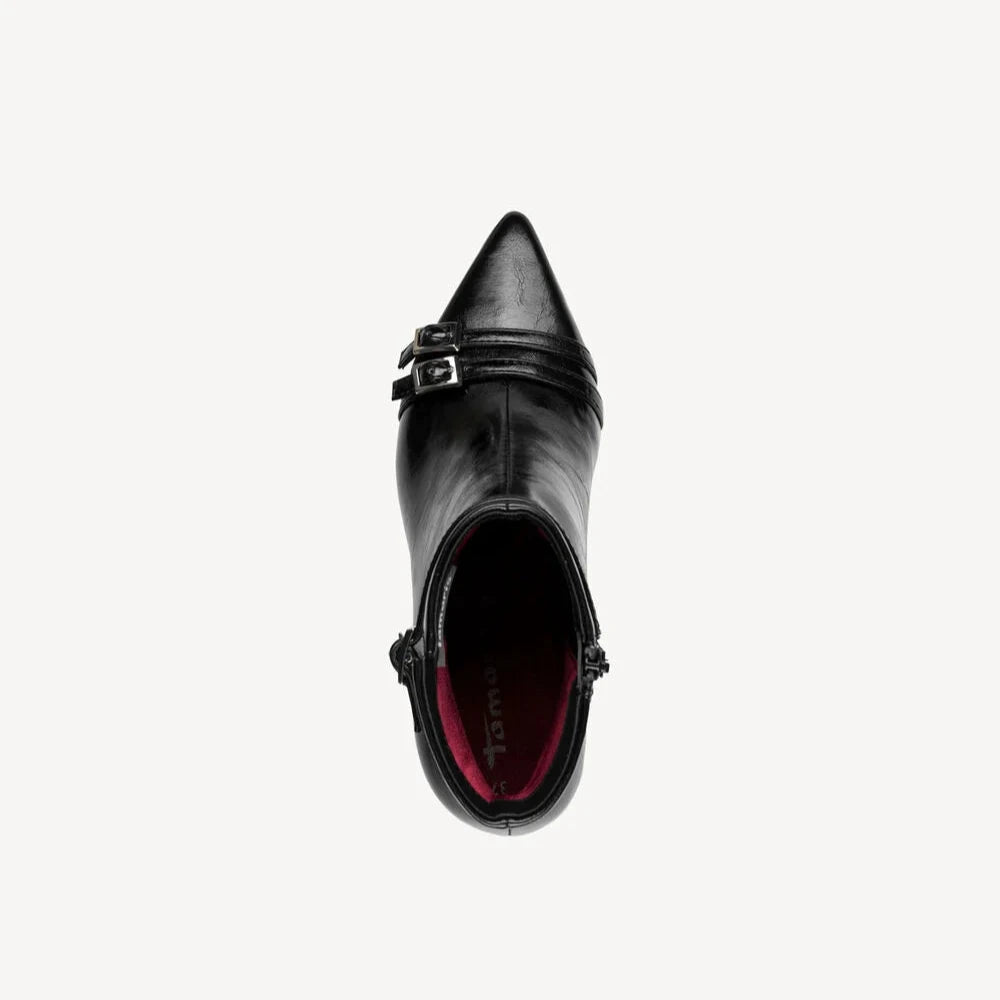Scopri il piacere di sentirti elegante e sicura con questi stivaletti Tamaris dal tacco stiletto di 7,5 cm, perfetti per le tue serate speciali o una cena fuori. Il morbido plantare Touchit si adatta alla tua forma rendendo ogni passo unico, mentre le doppie fibbie e la punta affusolata aggiungono un tocco vintage e raffinato. Perfetti per te che ami distinguerti con uno stile formale, moderno e sempre personale.