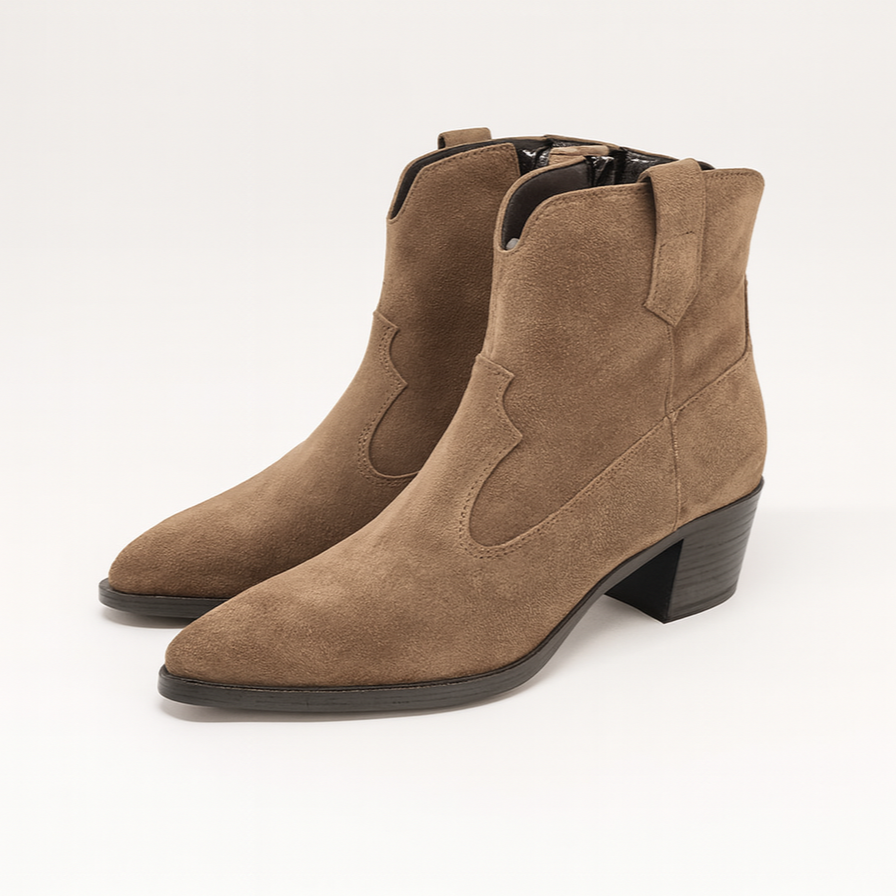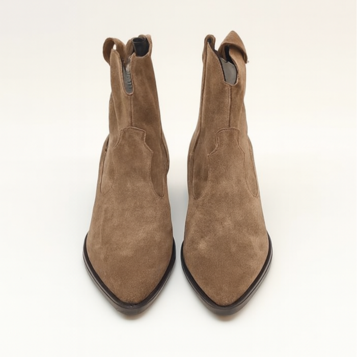 Stivaletto camperos basso in morbido camoscio color legno, perfetto per chi cerca uno stile rustico ma raffinato. La silhouette bassa garantisce comfort e praticità nell’uso quotidiano, mentre il materiale di qualità assicura durata e un aspetto elegante. Ideale da abbinare a look casual o più ricercati, questo stivaletto unisce funzionalità e charme in un unico capo.